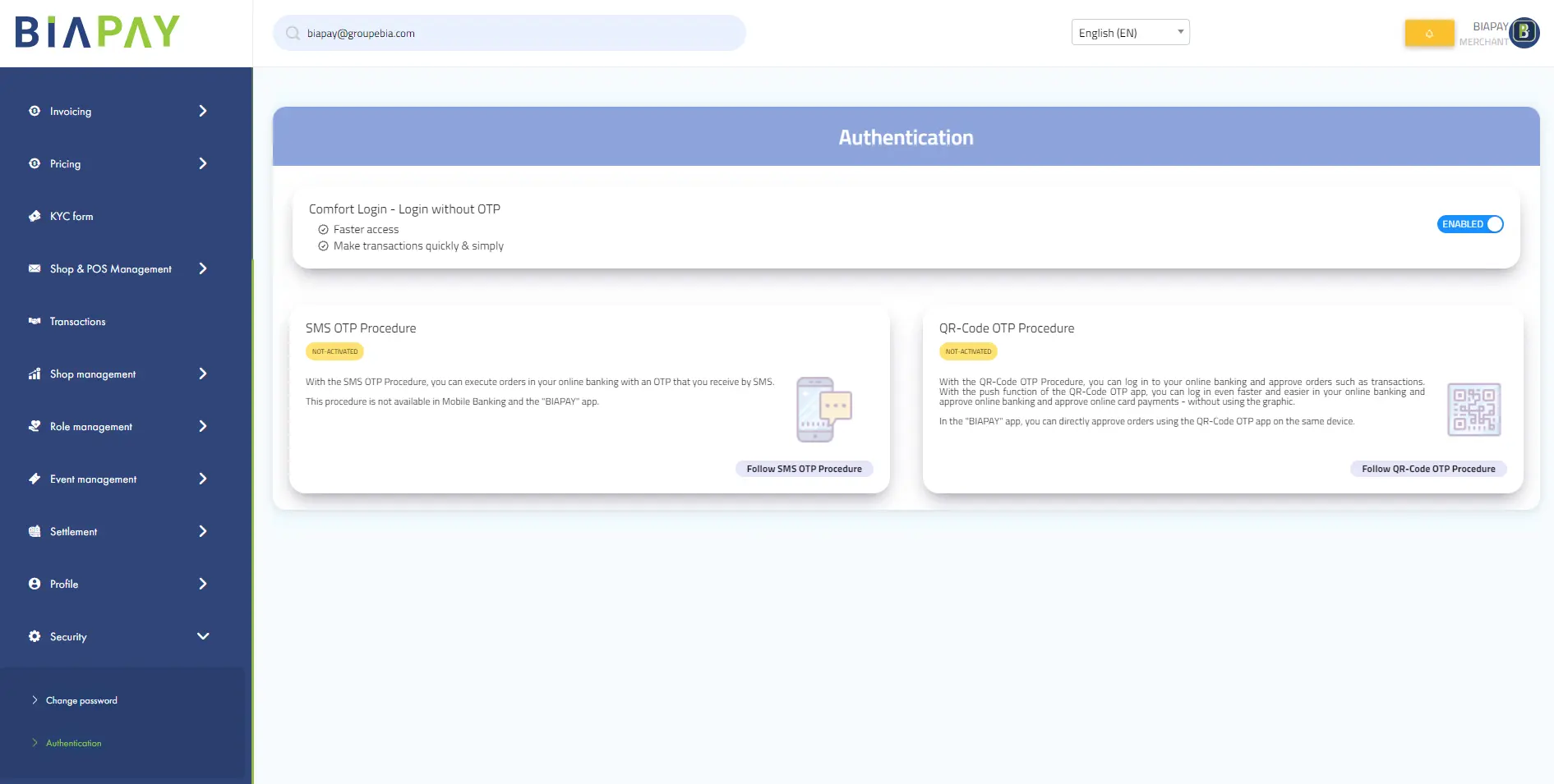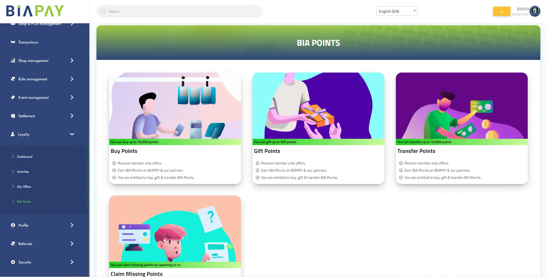 BIAPAY is a payment aggregator platform which integrates with several payment methods and allows the user to make payment to integrated merchants. Provides an extensive back office application for merchants and administration. Mobile payments, wallets, online banking, Stripe, PayPal, Visa, Mastercard, Unionpay payment methods are integrated with the aggregator gateway