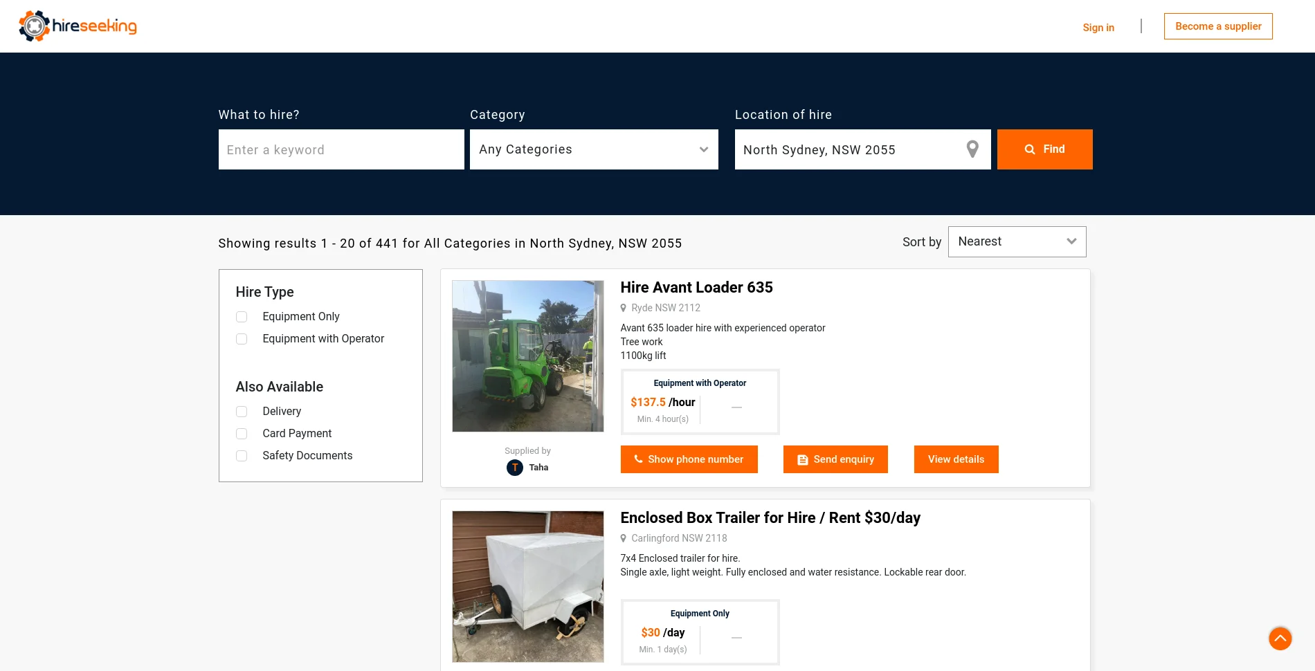 Hireseeking is a Rental marketplace for construction equipment and machinery. It connects the small construction companies and contractors with those who need machineries on a short term rental basis. Search is powered by elastic search and geo queries are used extensively to quickly filter results within configured radius.