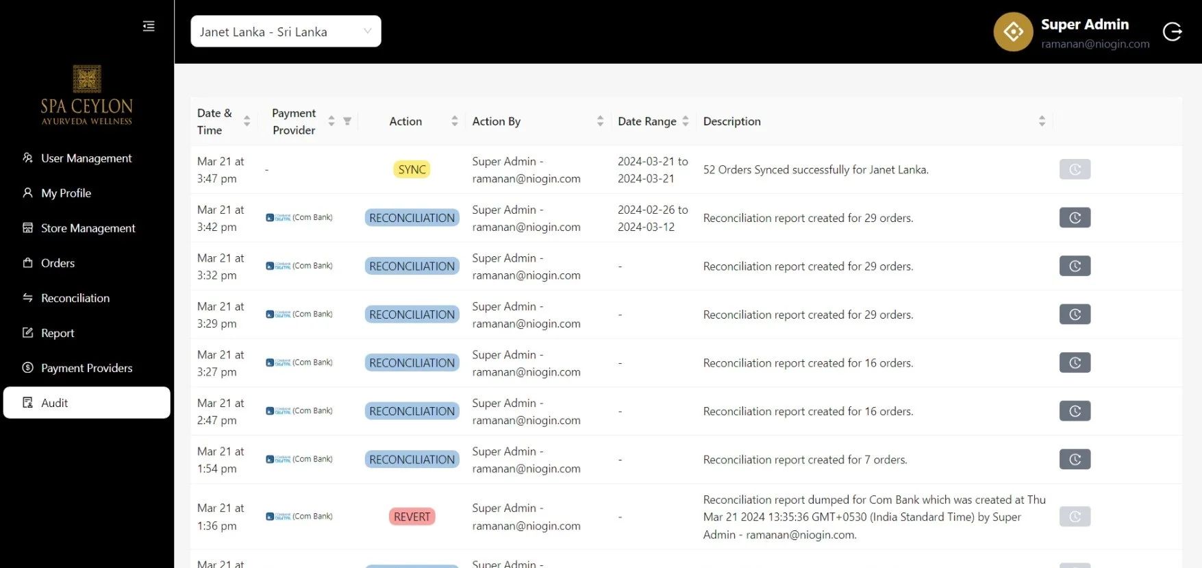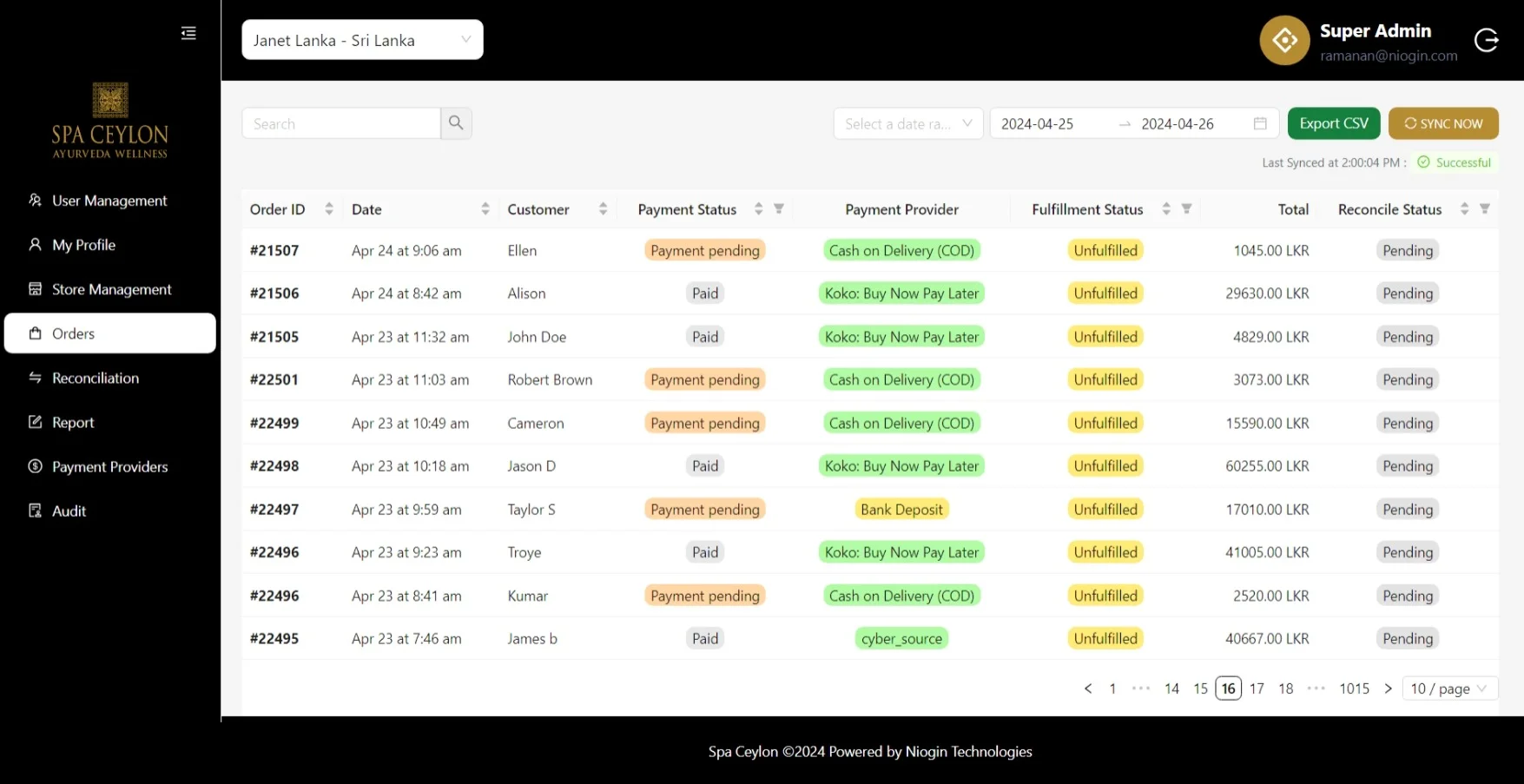 Spa Ceylon Report Dashboard