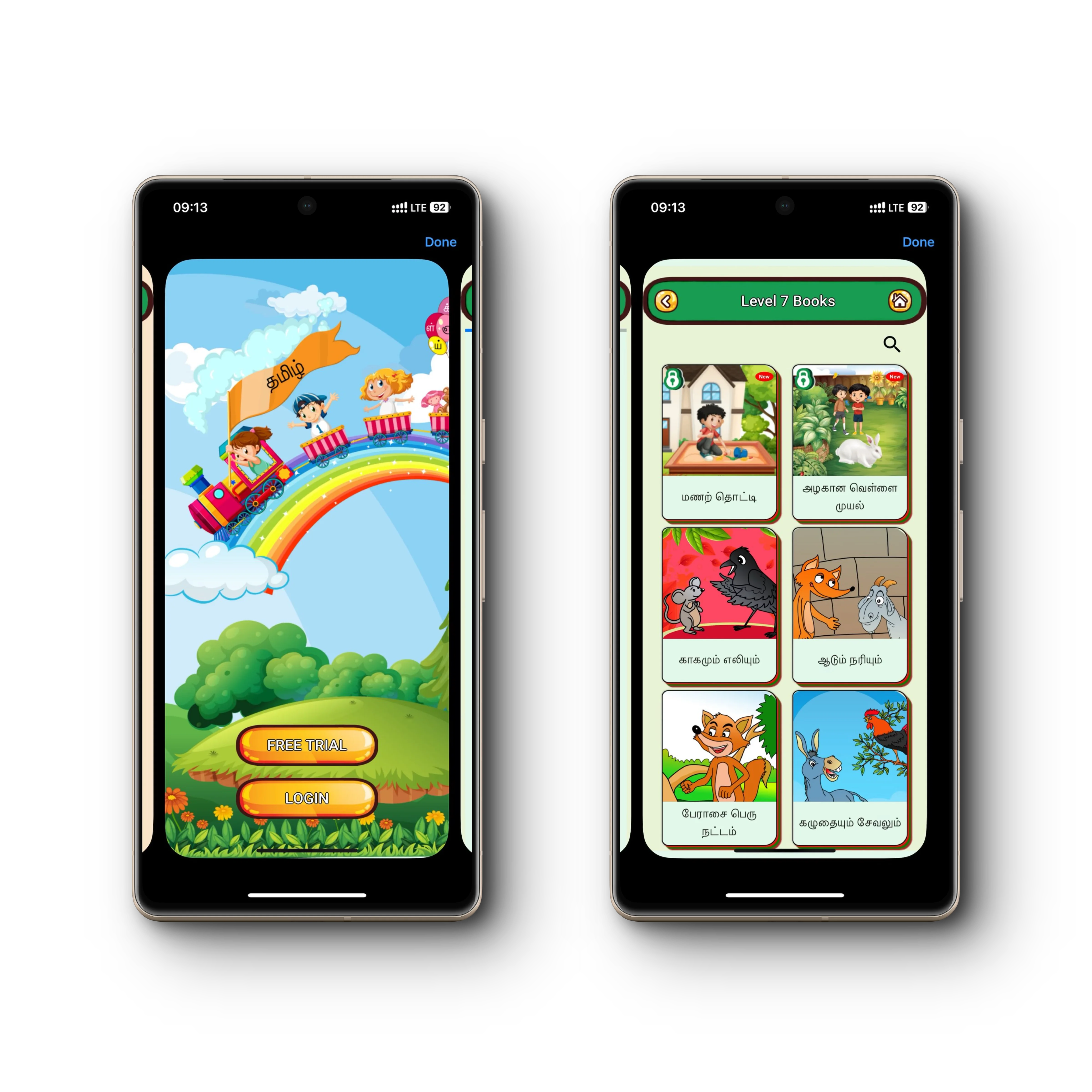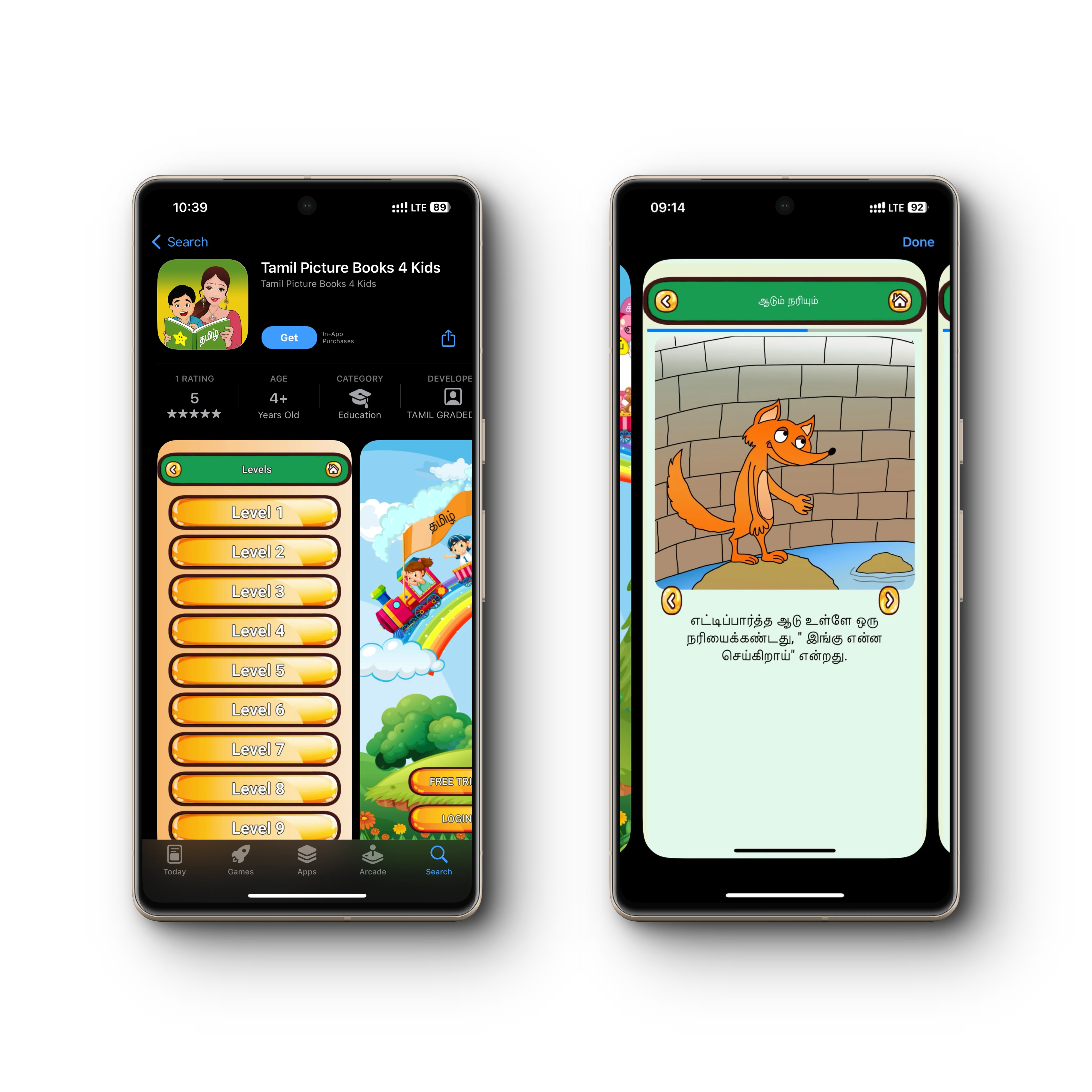 Tamil picture books is a cross platform mobile app for children that encourages reading through gamification. App provides in-app purchase to unlock additional stories.